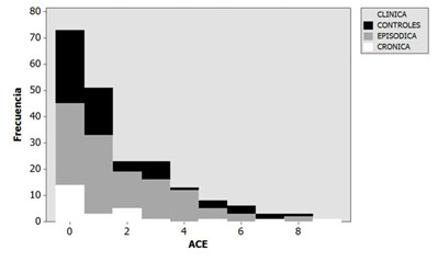 Figura 1: Histograma de experiencias infantiles adversas según clínica