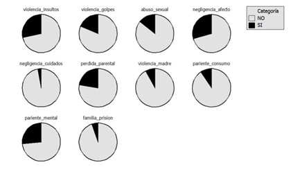 Se administró y puntuó el inventario de experiencias infantiles adversas 8 y se puntuó de 0 a 10, considerándose resultado positivo un valor superior o igual a 1. Se discriminaron las experiencias en; físicas, sexuales y emocionales.